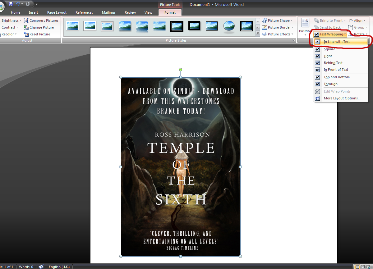 The last thing this guide will cover is adding images to your file. Generally, fiction won’t have any images, but perhaps you’ve written an epic fantasy tome and need a detailed map of the realm/s inserted. Or a photo for the About the Author page. NOTE: Bear in mind that there is no need to add your cover, as it will automatically be put into the front of the file the reader downloads. Also bear in mind that most e-readers are black and white.