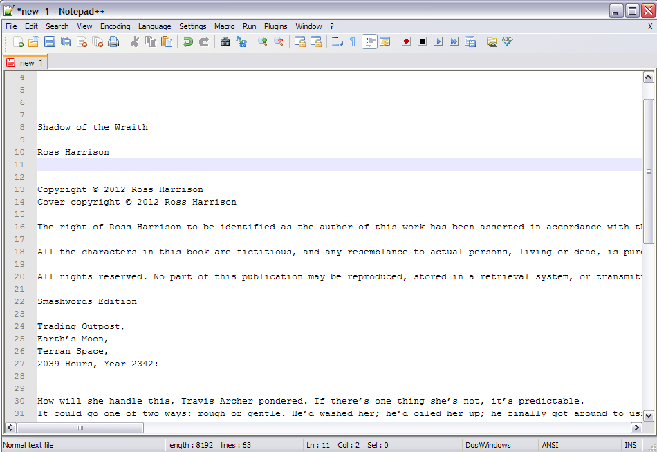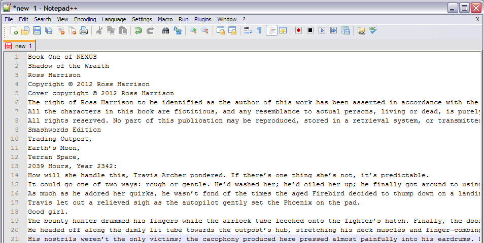 - In Notepad++ press Ctrl+V to paste in your manuscript