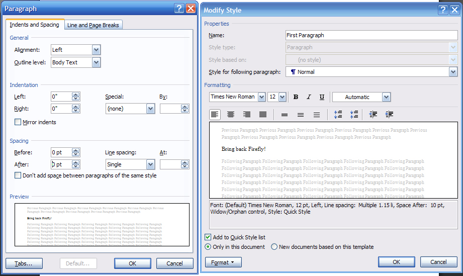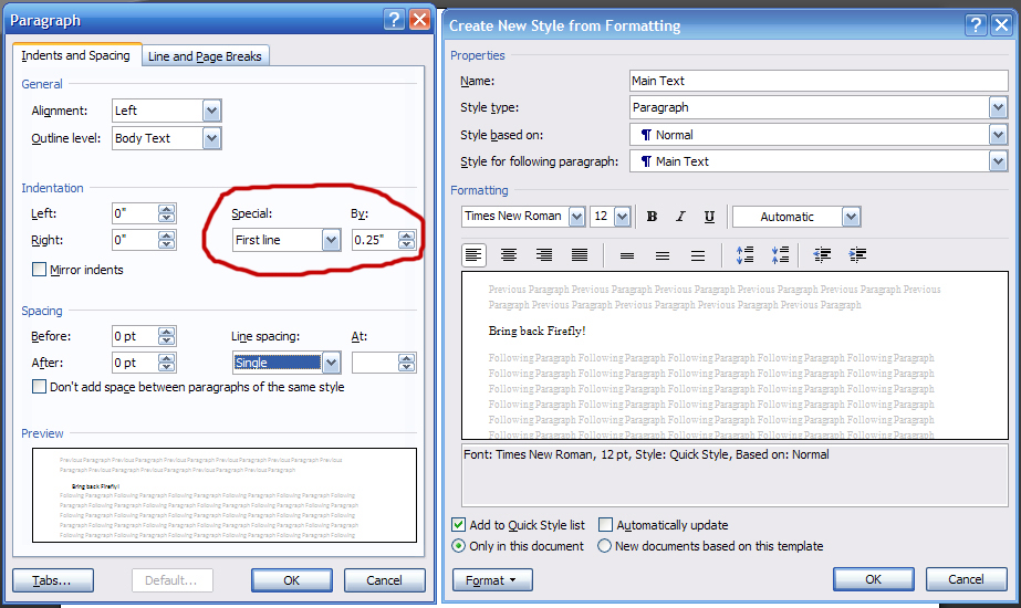 Now, the first line after any kind of break should not be indented. This means that we’ll need to create two styles: one for the first paragraph of each section and one for the rest of the text.