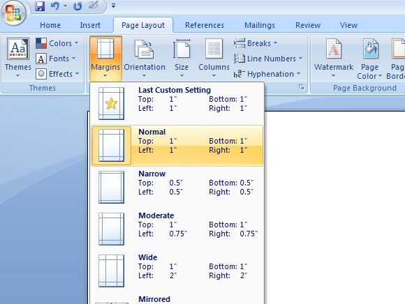Next, check your page layout. Margins should be ‘Normal’. That is ‘Top: 1″, Bottom: 1″, Left: 1″, Right: 1″‘. Ensure that the style selected is ‘Normal’ and that there are no Headers or Footers.